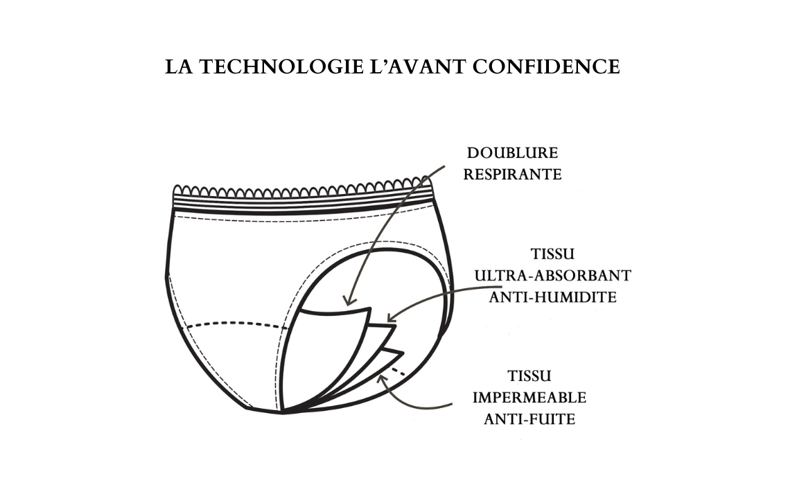 Porter une culotte d'incontinence urinaire, c'est comme porter une culotte classique. Nos sous-vêtements sont composés de 3 couches de tissu ultra absorbant qui évacuent l'humidité et séche rapidement pour vous assurer une protection optimale tout au long de votre journée. L'association de ces tissus permet ainsi de rester au sec jusqu'à 12h d'affilée. Vous n'avez plus besoin d'utiliser des couches ou protections puisque votre sous-vêtement se substitue à tout autre protection pour fuites urinaires.